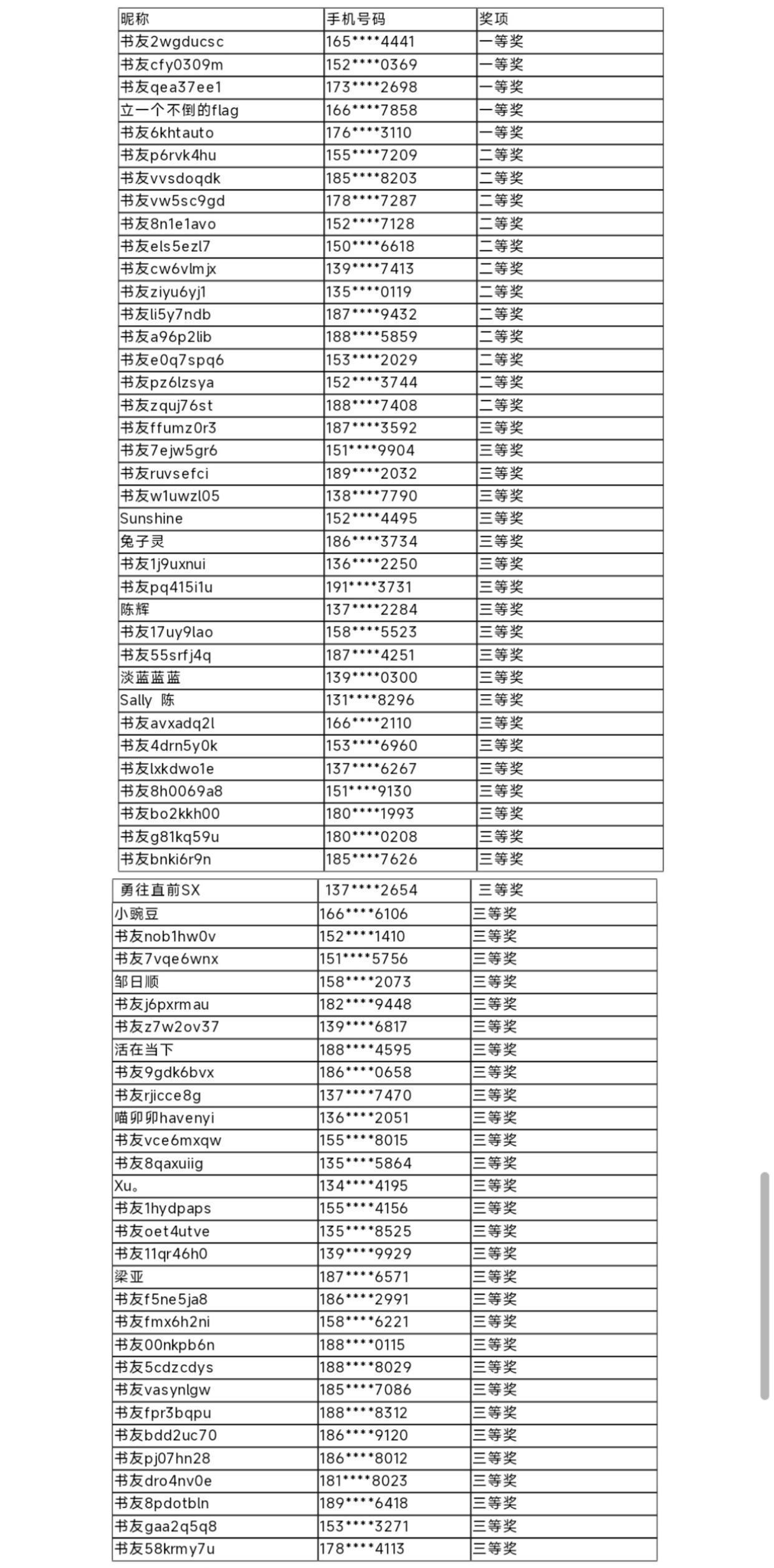 “书香过大年”系列活动获奖名单正式公布。全民参与热情高,书香浸润乡村大地“我平时工作忙,没太多时间看书,但这次活动让我养成了每天听书的习惯。”杨老师是南岳镇金月小学的一名教师,也是平台的忠实粉丝,“参加阅读答题挑战活动,我认真思考每道题,没想到竟然答对了大部分题目,还赢得了二等奖!我觉得阅读真的能让人变得更聪明。”